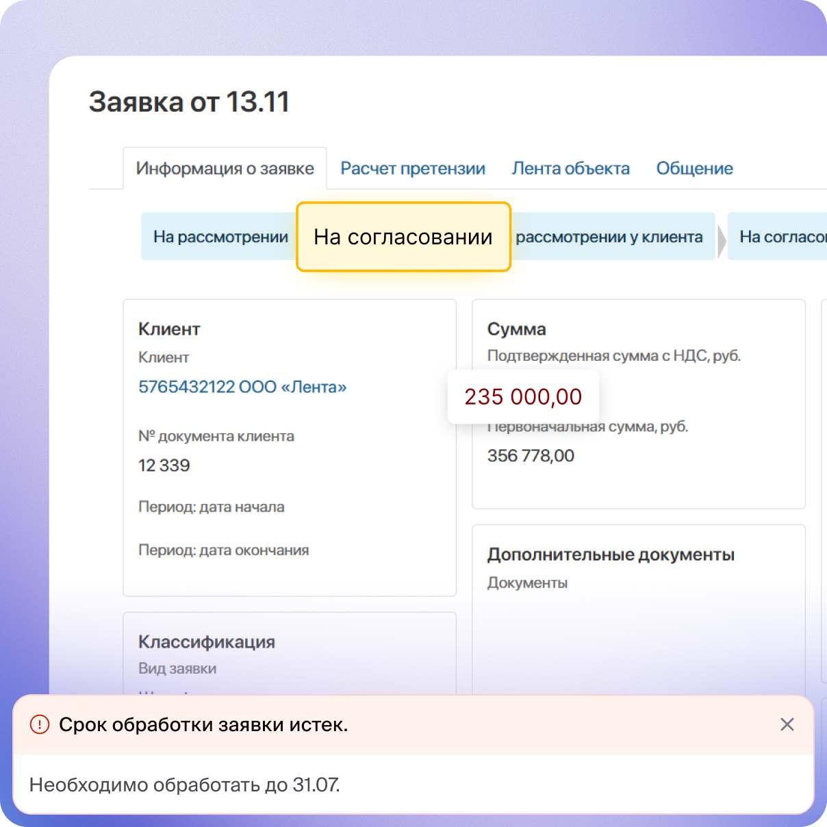 - Контроль по SLA — система предупреждает о рисках просрочек и нарушениях сроков
